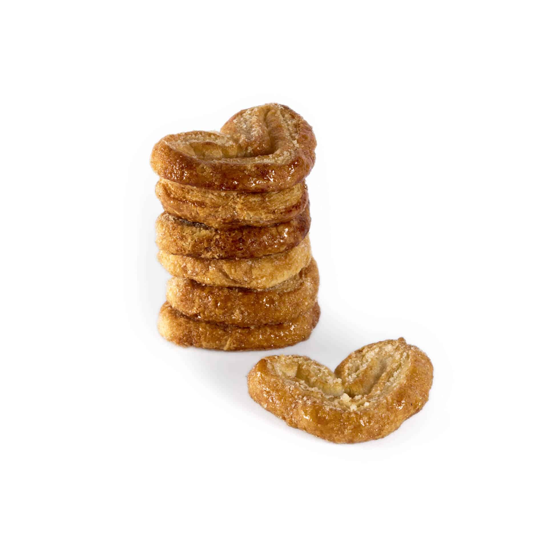 La nostra versione dei palmier francesi sono cuori di vienneserie sfogliata al burro e caramellati in forno con zucchero di canna bio.
